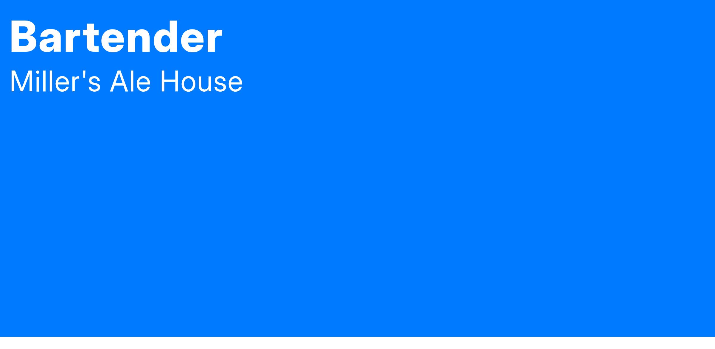 At Miller’s Ale House, you’re not just serving guests amazing food and drinks; you’re making our atmosphere truly unique. Our full-service bar features specialty cocktails, like our Watermelon Margarita; a nice wine selection; and over 75 varieties of local craft, seasonal and domestic beers.