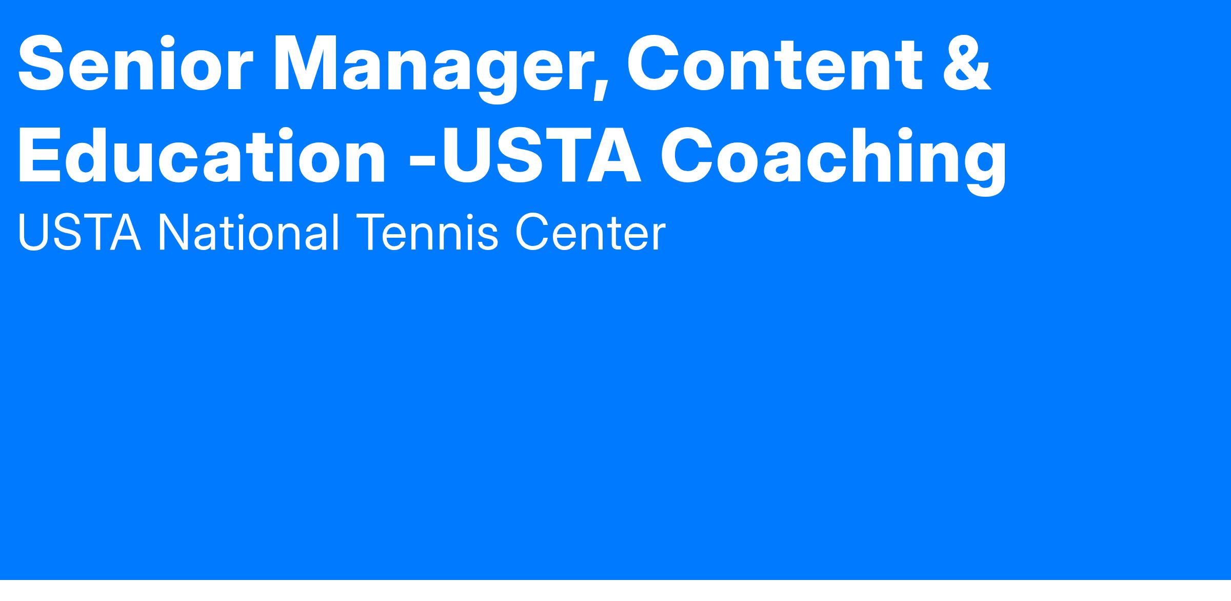The Sr. Manager, Content & Education plays a pivotal role in curating and delivering high-quality educational experiences that bring the USTA Coaching Philosophy to life. Focused on empowering coaches and parents across all experience levels and contexts, this position ensures that every learning interaction supports the delivery of fun, developmentally appropriate, and player-centered tennis experiences